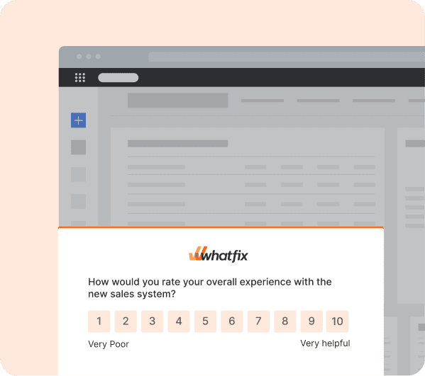 User adoption isn’t a one-time achievement. Continuous improvement requires structured feedback mechanisms that capture insights from the people using the system every day, and as it evolves. With Whatfix, organizations are enabled with quantitative and qualitative feedback to improve user experiences, like: