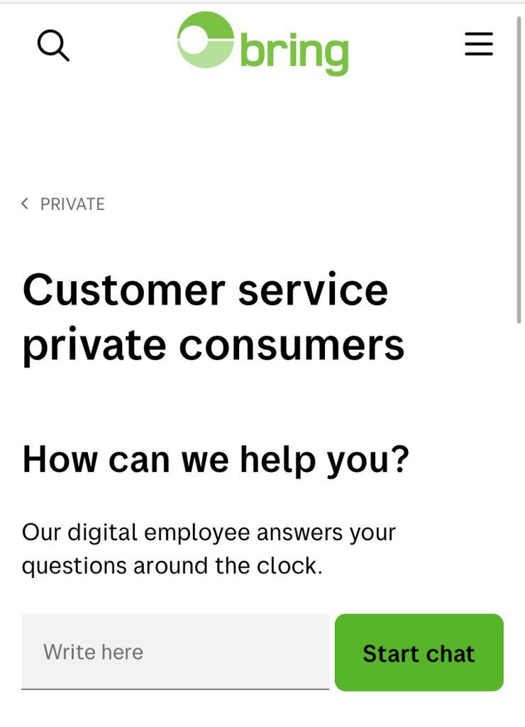 Bring, a popular shipping service, offers an AI chatbot that they refer to as their ‘digital employee,’ giving customers confidence that the chatbot can likely answer their questions, but also being transparent about the fact that it’s AI-powered.