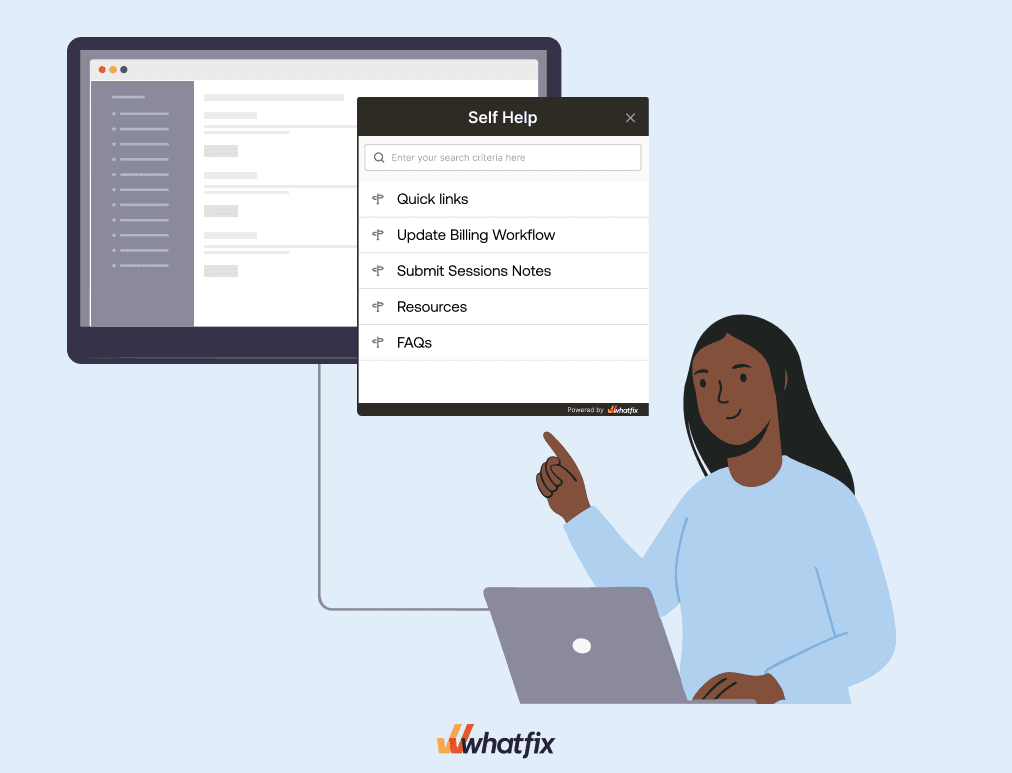 With Whatfix, mental healthcare leaders can accelerate digital adoption to improve service quality, provide patient-centric experiences, and streamline internal operations. From compliance training portals to EHR systems to appointment scheduling, Whatfix integrates with healthcare software to facilitate technology adoption and patient access to mental healthcare.